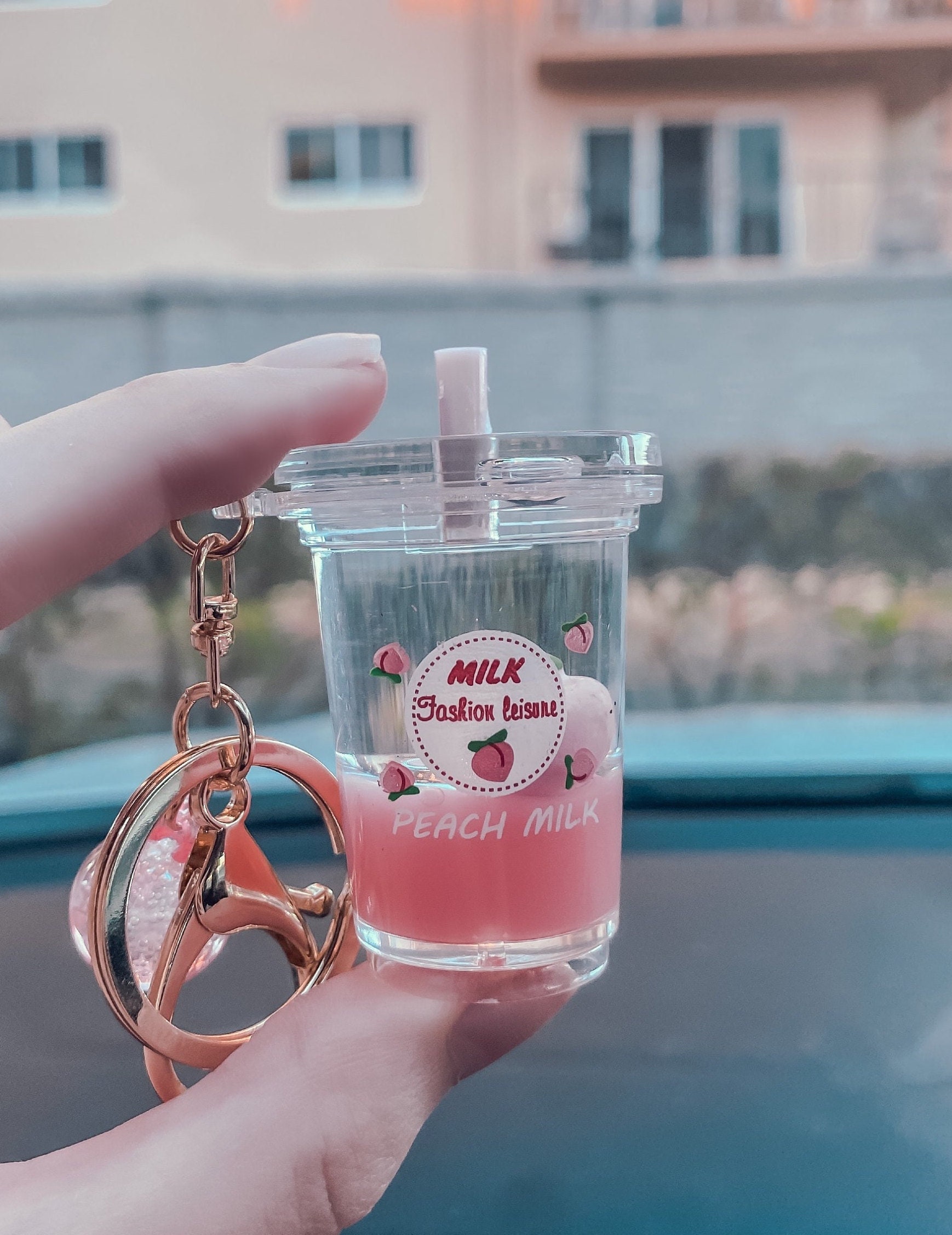 Peach Liquid Keychain Boba Keychain Quicksand Keychain Etsy